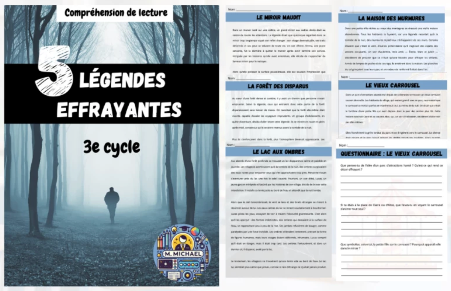 5 courtes compréhensions de lecture (légende)