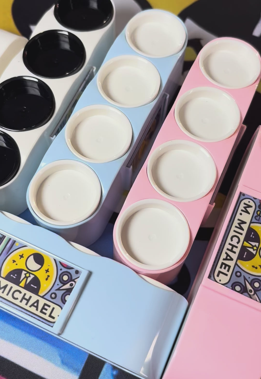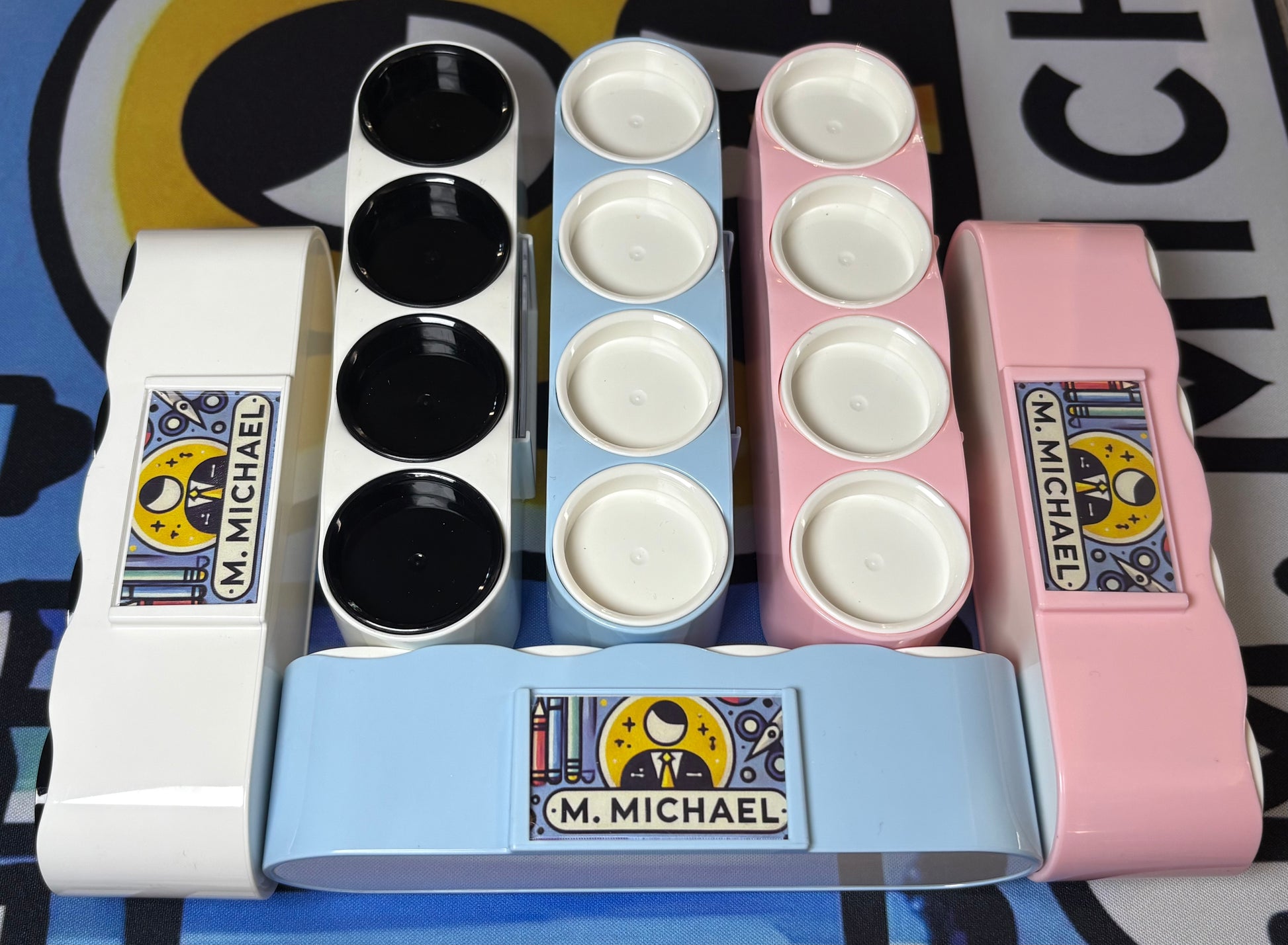 Cette étampe 4 en 1 personnalisée comprend quatre étampes rondes intégrées dans un même boîtier.